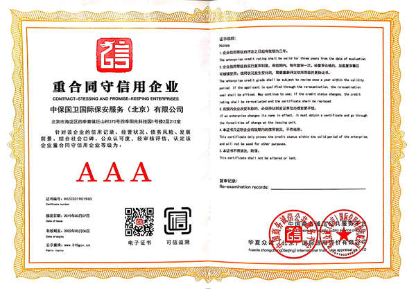 中保國衛(wèi)國際保安服務(wù)(北京)有限公司,屬中保國衛(wèi)集團(tuán)旗下子公司。能全方位的為大型客戶提供優(yōu)質(zhì)的安保、押運(yùn)服務(wù),是集人防和技防于一體的新型正規(guī)化綜合安保押運(yùn)服務(wù)企業(yè),提供人防、物防、技防、聯(lián)網(wǎng)報(bào)*、非武裝押運(yùn)等安防相關(guān)的一站式服務(wù)。